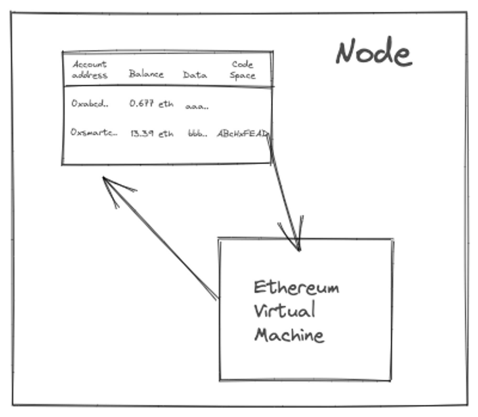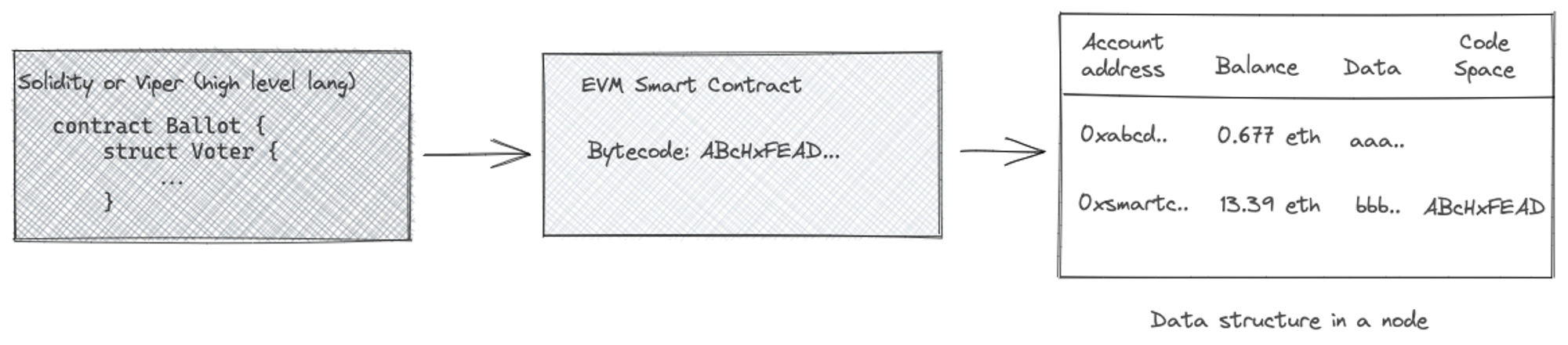 Ethereum chose the data model where each account stores and secures its own state - similar to your bank account. There are two types of accounts: Externally Owned Accounts (EOA), which is what we deal with in wallets, and Smart Contract accounts - both have their own nodes in the graph.