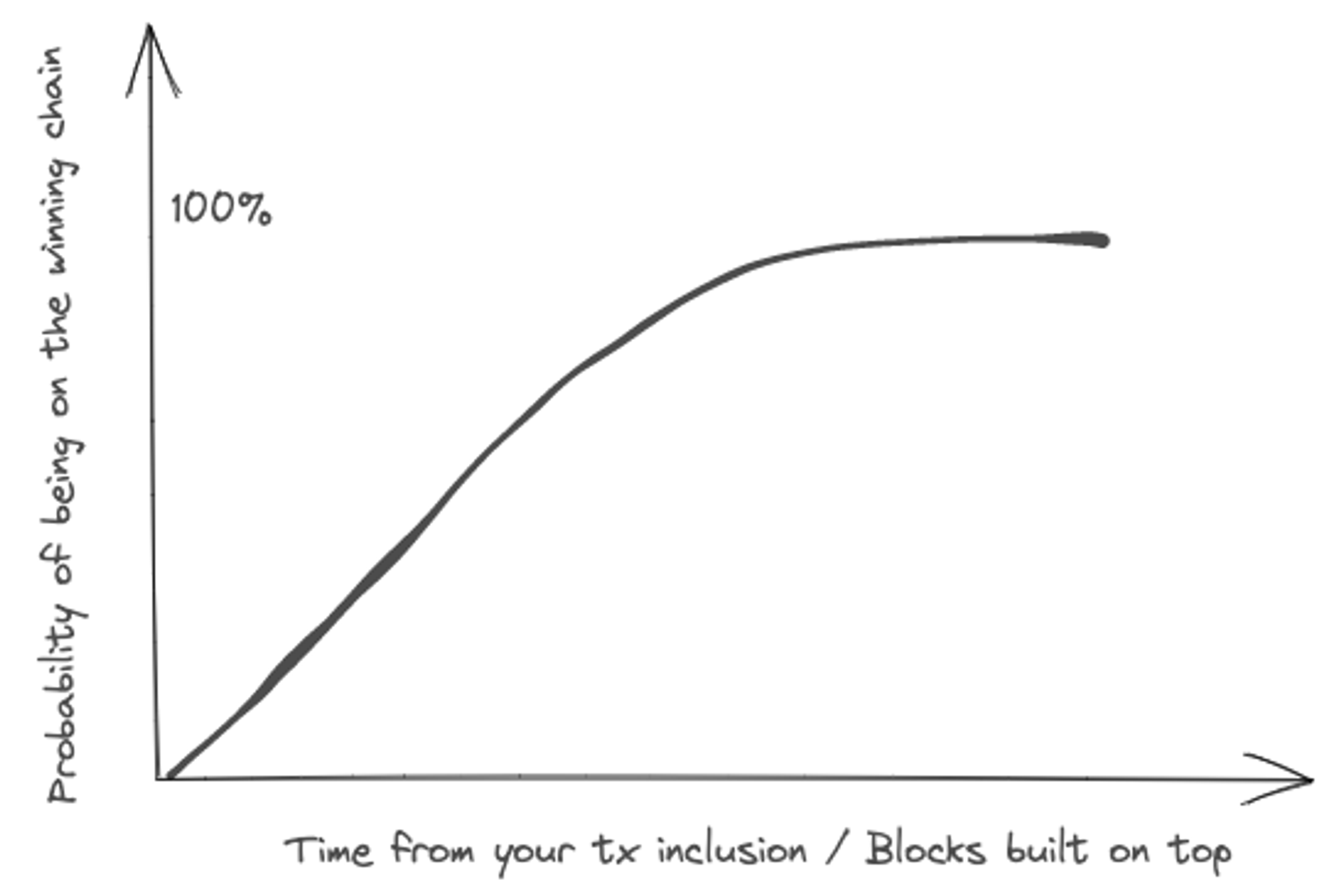 Hence, the concept of finality arises, and an important one to internalize when comparing blockchain solutions. In Bitcoin, for example, it is highly unlikely that your transaction will be undone and re-orged, when several other blocks have been chained on top of your block.