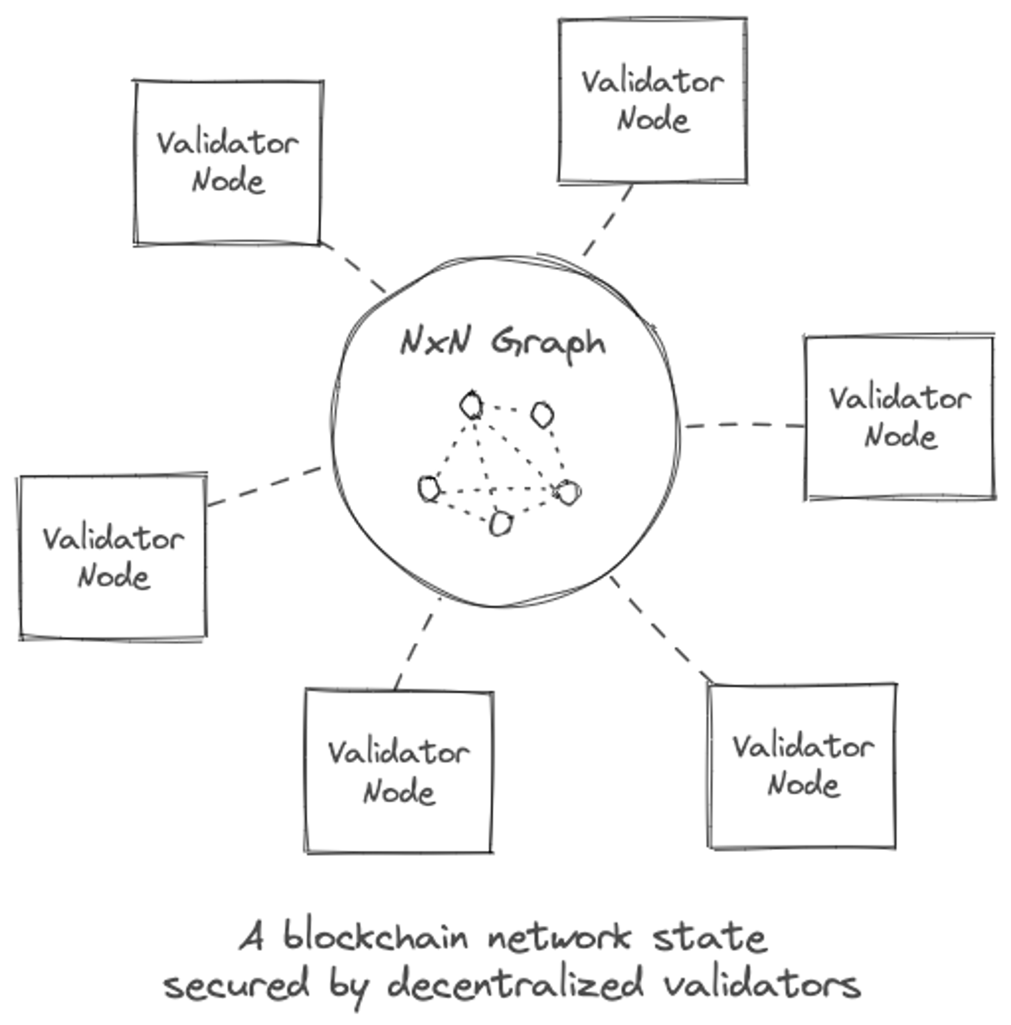 So, a blockchain network is a set of validator nodes who try to agree on the state-changes over time by following a consensus algorithm. Each validator only trusts itself and no other peers, carrying a full state of the database in its storage. They communicate with each other through a common language (the specific blockchain protocol), and can tell who speaks their dialect and who doesn’t - i.e. which validator is not following the protocol.