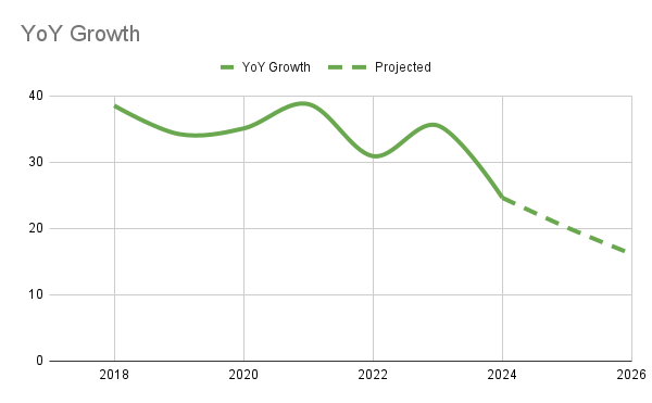 - 2024 Revenue is forecasted to reach over $300B. A 20% CAGR is stellar for an industry this large.