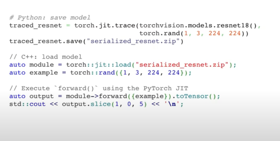 - torch.jit.trace() --> tracers tensor oeprations, but does not capture control flow