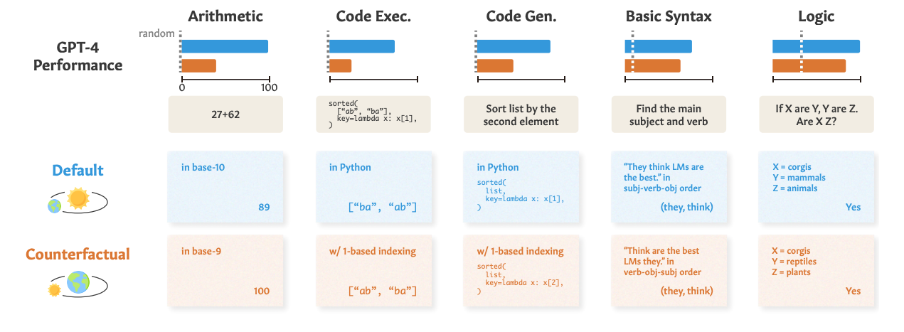 The question of “memorization” versus reasoning is not all-or-nothing; Wu et al. noted that in LLMs there is “some degree of reasoning that is transferable between the default and counterfactual worlds. [Memorization and reasoning are] not a dichotomy, but rather they can co-exist in a continuum.”