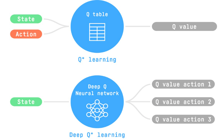 Q-Table mapping only works for small action-state spaces to be stored in memory. In problems like video-games or self-driving vehicles the action space is gigantic and it is better to approximate the Q-values using a parametrized Q-function: